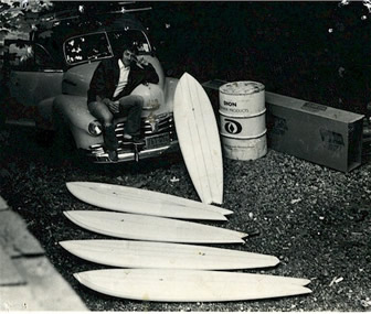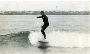 ![]() Jim Rorech riding one of the first ever Bunger Surfboards |